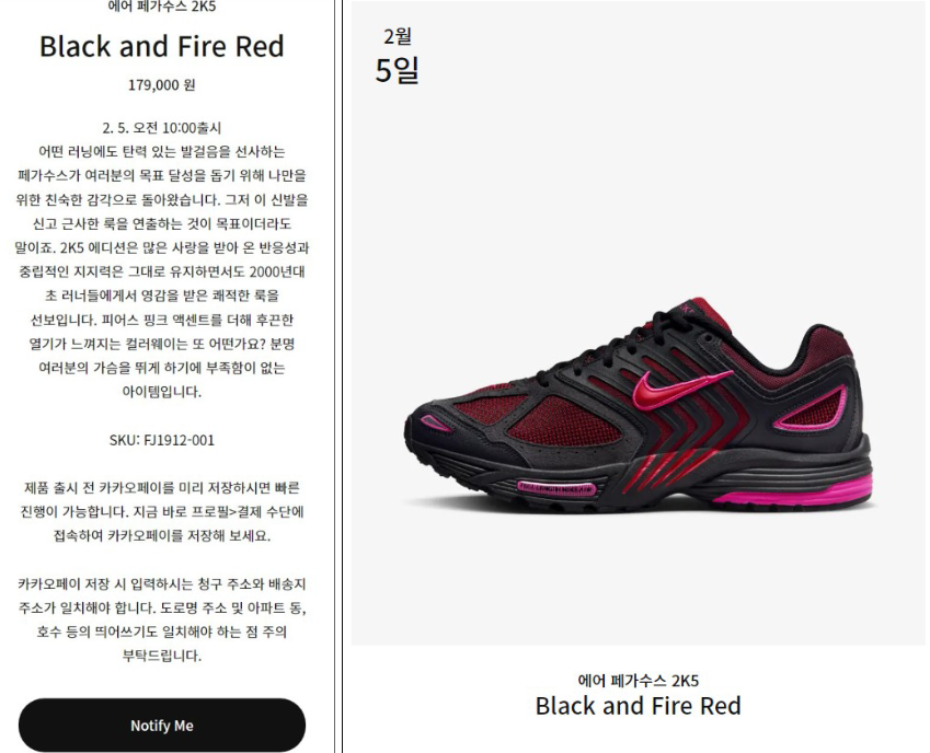 나이키 에어 페가수스 2K5 블랙 앤 파이어 레드 발매정보