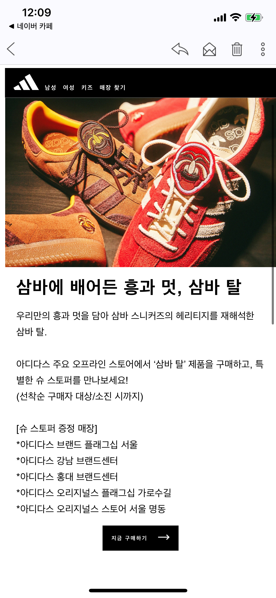 아디다스 오프라인 스토어 삼바 탈 발매정보