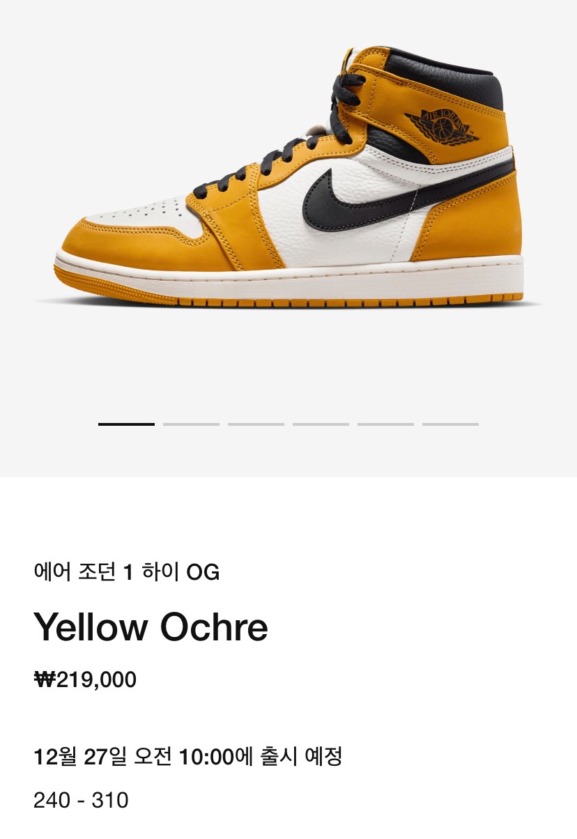12/27 나이키 코리아 루키맛 에어 조던 1 하이 OG Yell…