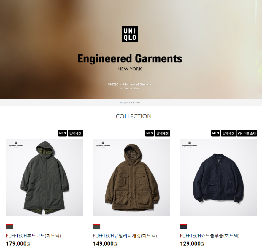 유니클로 X 엔지니어드 가먼츠 콜라보 발매 예정 (11/10)
