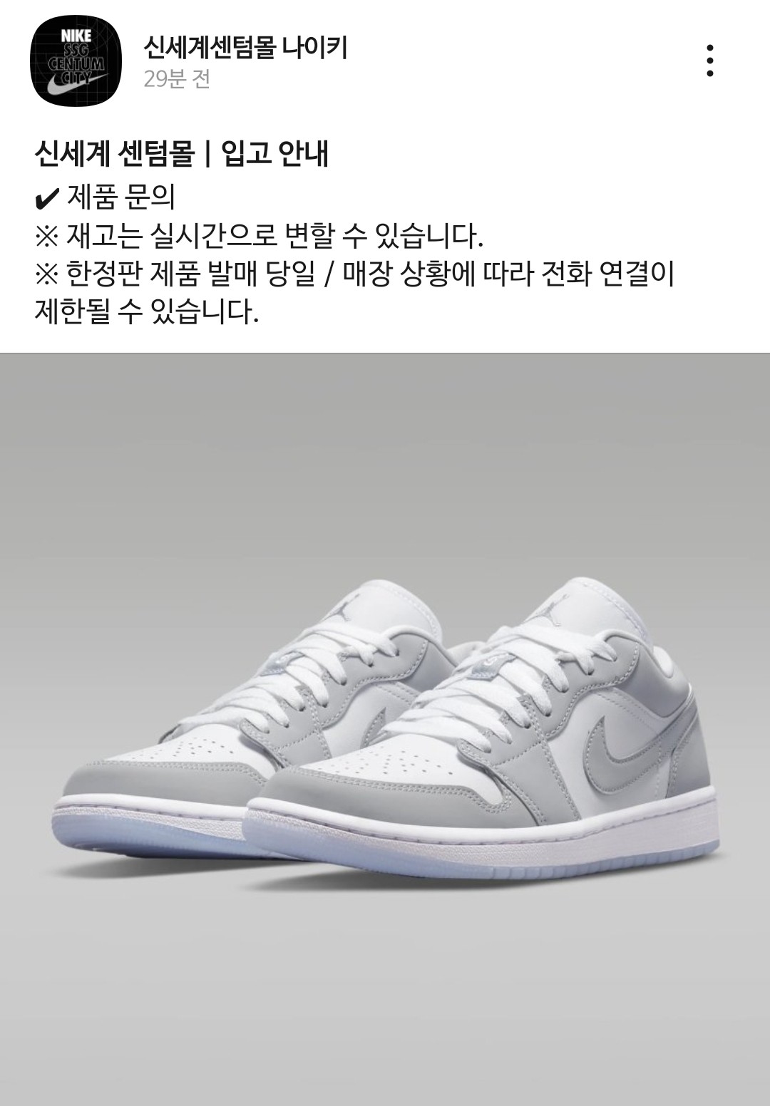 신세계센텀몰나이키 에어조던1 로우 울프그레이 발매정보
