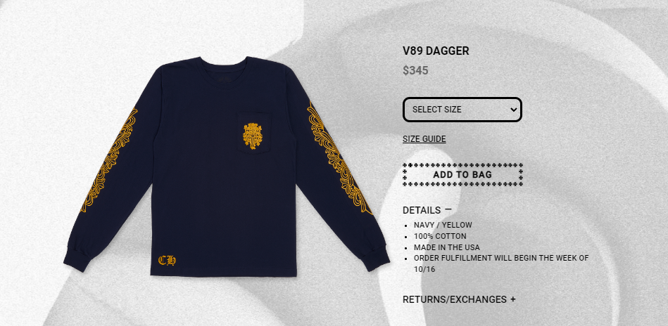 크롬하츠 공홈 v89 대거 롱슬리브 발매