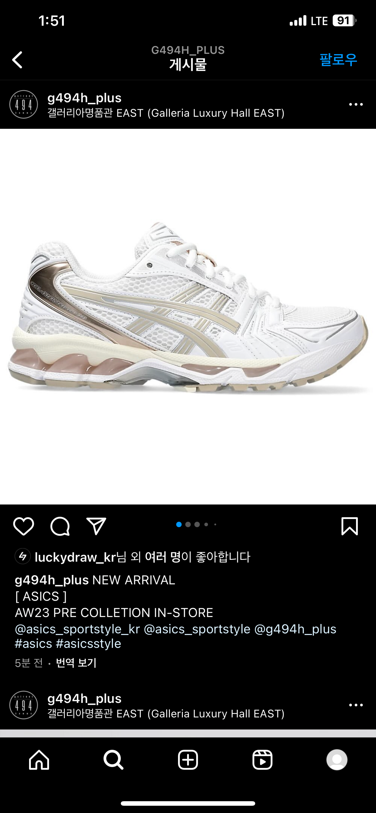 한섬EQL 아식스 젤 카야노14 화이트 미드나잇 크림블랙 2종
